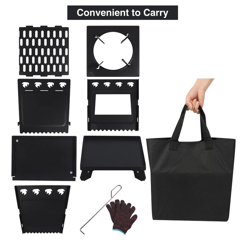 - Easy to Assemble & Carry: Easy to setup this survival stove within minutes. Unfolded size: 11.8x11.8x17inches/30*30*43cm. Folded size: 12.6x12.6x4inches/32*32*10cm. Weight: 13.2lbs/6kg. Equipped with a carrying bag for you to take it to anywhere you want.