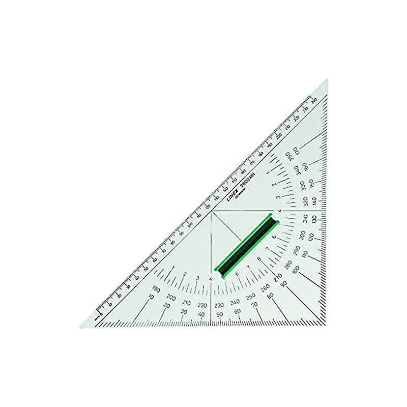 - Nautical protractor with vertical edge and comfortable plastic handle. Hypothenuse: 280 mm, cathet: 200 mm