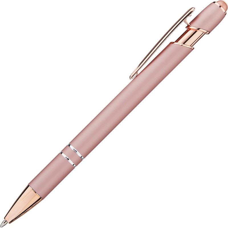 LINFANC 12 Pack Rose Gold Ballpoint Pen with Stylus Tip, 1.0 mm Black Ink Smooth Writing Pens, Metal Stylus Pens for Touch Screens
