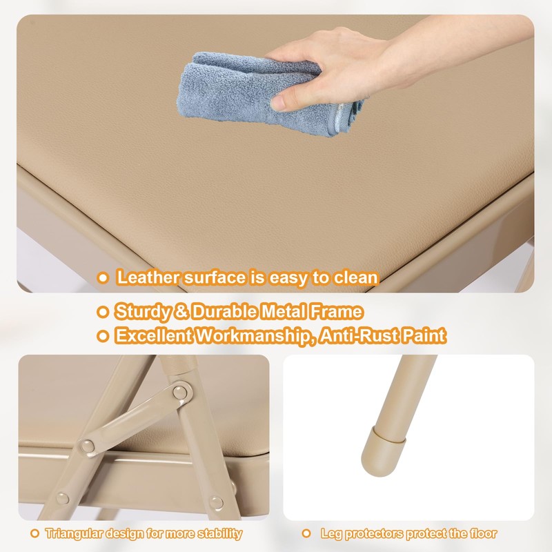 - 【Modern, Versatile & Space-Saving Design】Designed with a sleek frame and minimalist PU leather finish, these modern folding chairs blend into any décor. Use them as extra chairs for home, office folding chairs, dorm seating, church functions, or outdoor gatherings.