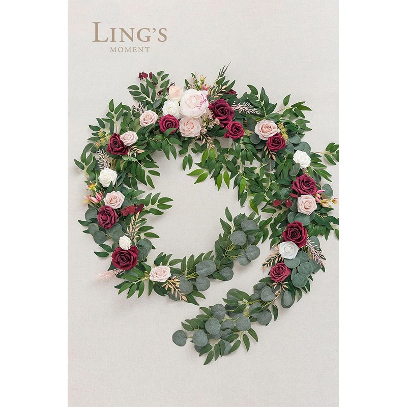 Ling's Moment 9FT Eucalyptus and Willow Leaf Garland with White Flower, Handcrafted Wedding Sweetheart Table Centerpieces Head Table Decor Arch Backdrop Decorations for Wedding | Marsala