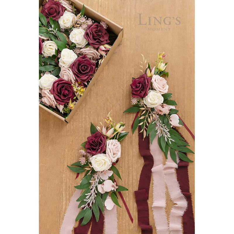 - The bouquet is knotted on a long ribbon, so they can be tied around many size or type of chair needed easily and conveniently.