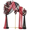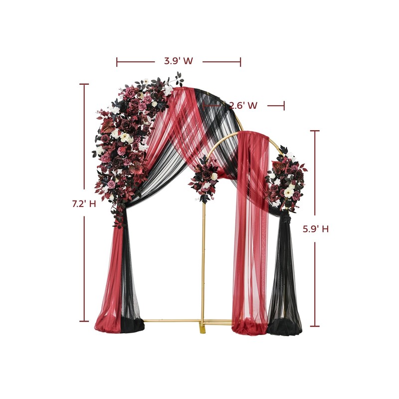 Ling's Moment Wedding Arch Backdrop Stand with Flowers - 7.2FT, 6FT Set of 2 Metal Arch Frame with Drapes for Ceremony Decoration - Artificial Floral for Birthday Party, Baby Shower, Black Burgundy