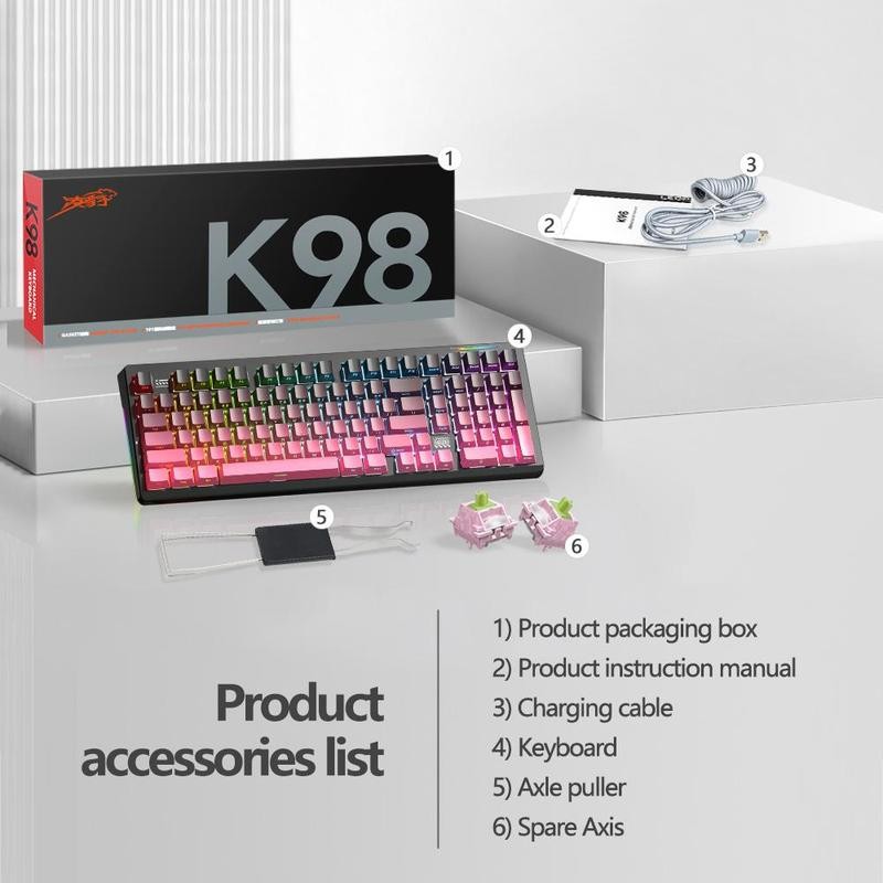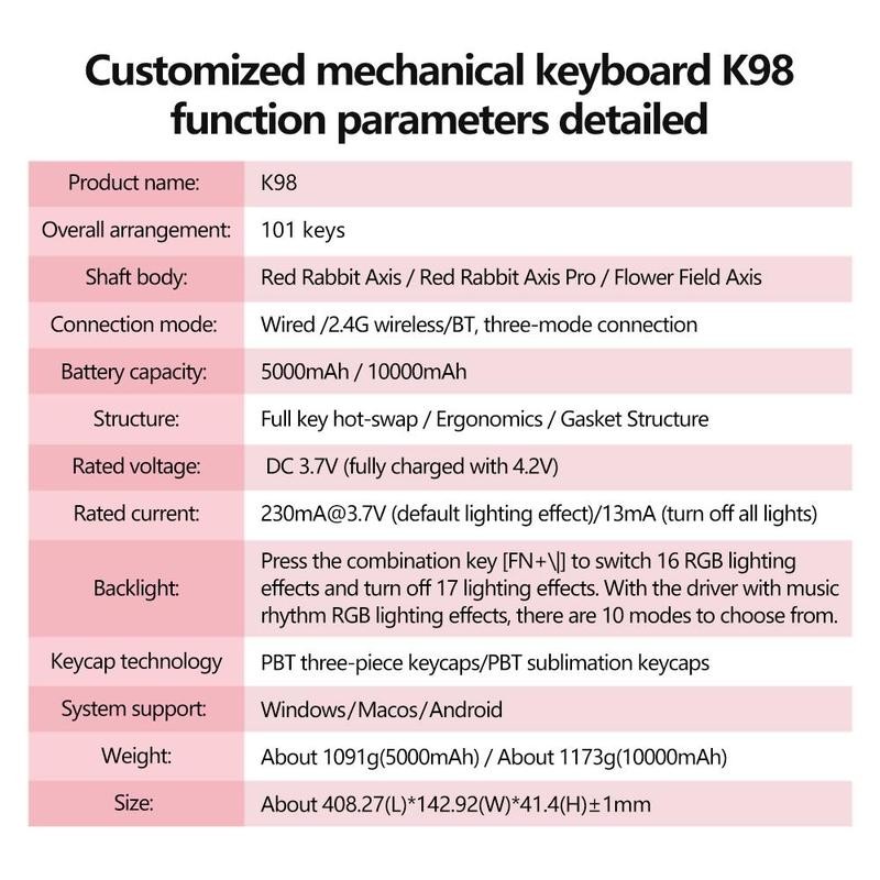 Lingbao K98 Mechanical Keyboard, Rechargeable Wireless Keyboard with RGB Side Light, Gaming Keyboard for Office & Home:_Blackberry powder contour_Glazed shaft [10000mAh]