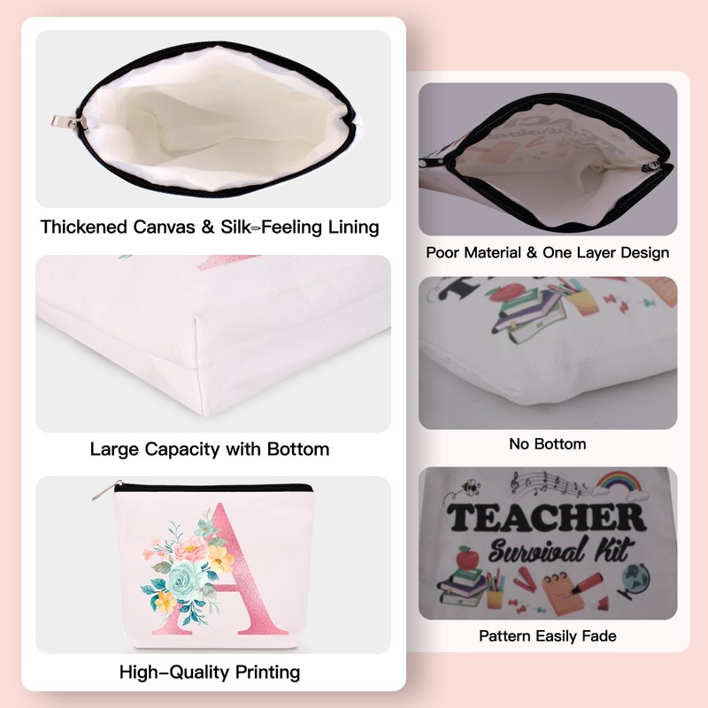 Lingdeer - Bolsa de maquillaje de lona con inicial para mujer, bolsa de cosméticos personalizada para niñas, bolsa de maquillaje para boda, cumpleaños, playa, día festivo, regalo para mujeres, mamá, profesores, amigos, damas de honor, H, Impresión de let