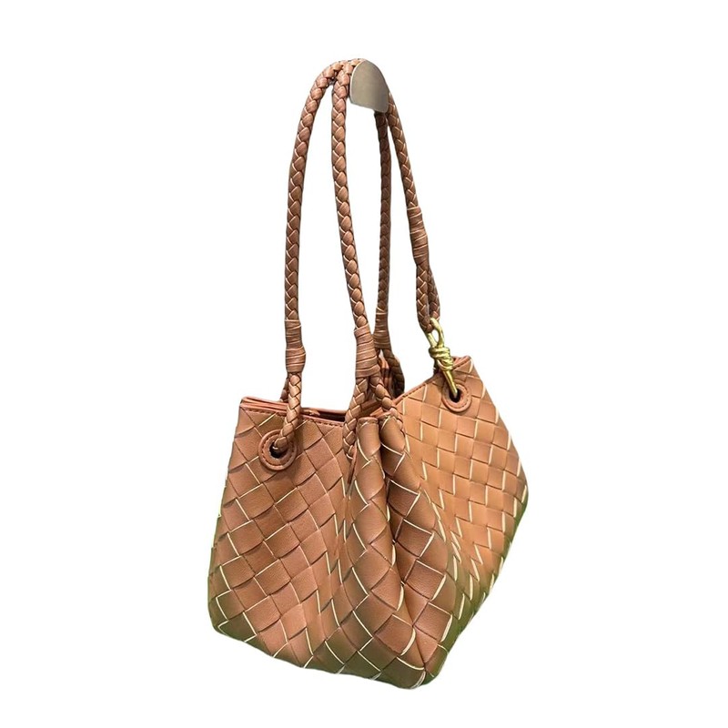 LingEva Genuine Cowhile Leather Woen Tote Bag Woven Crossbody Bag (Brown)