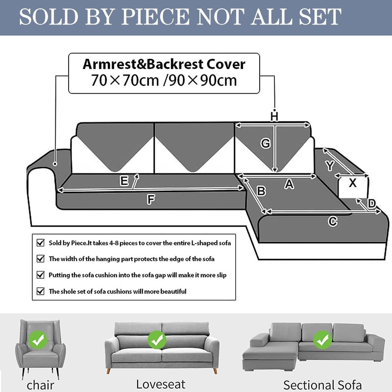 - Items sold individually, not in a set: This sofa cover consists of many pieces in different sizes. If you need to cover the whole sofa, you will need to buy many sofa covers in different sizes. Please measure the size of your sofa carefully before purchasing. - -