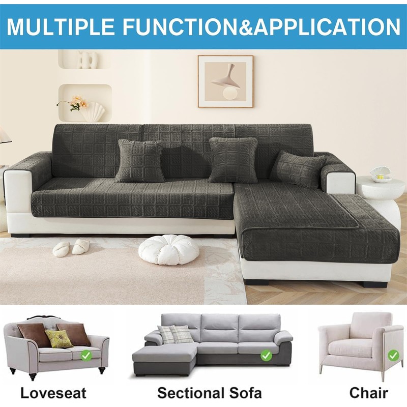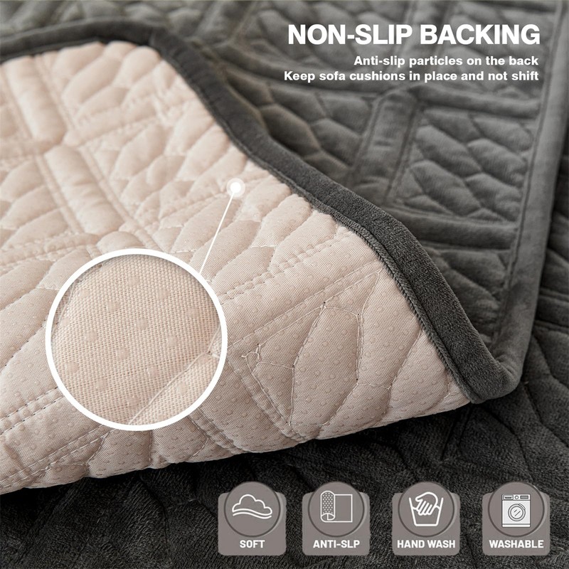 - High-quality material: The sofa cover is made of short crystal velvet fabric, which feels soft and smooth and makes your sofa more comfortable and durable. The back of the sofa covers is equipped with non-slip latex particles, which are soft and compact and prevent shifting. It can protect the sofa from stains and scratches.