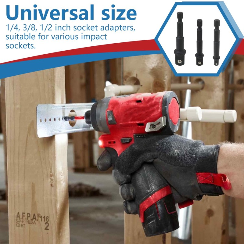 - Sizes: Includes 1/4, 3/8, and 1/2 inch socket adapters to fit various impact sockets.