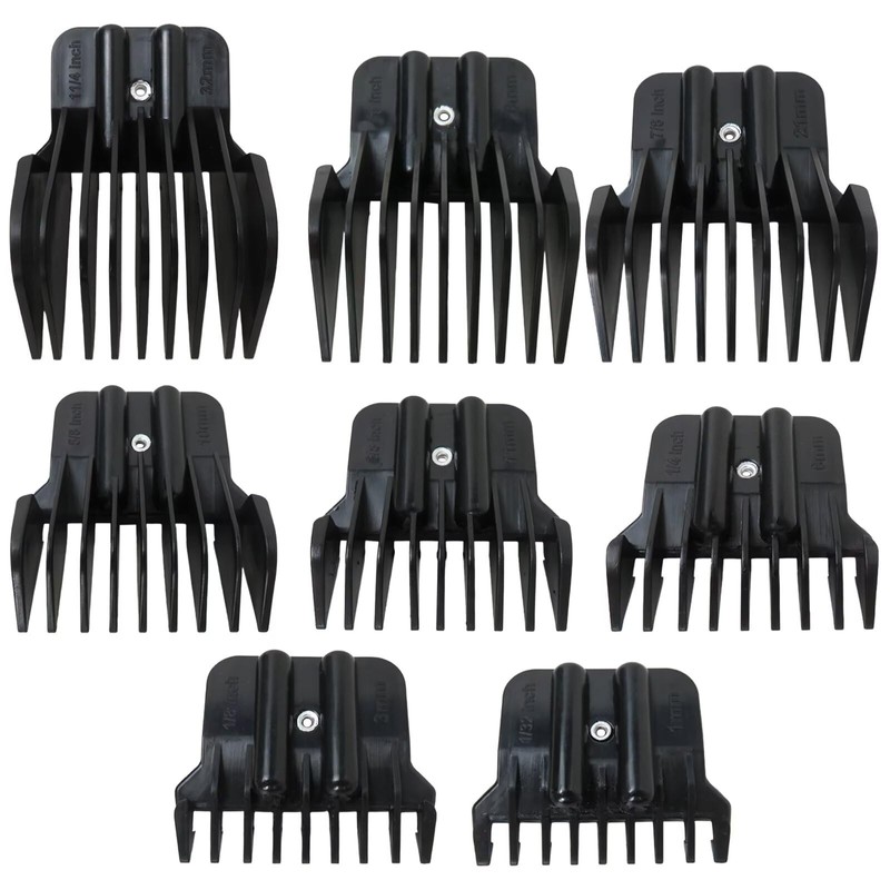 - 【Size】 No.1- 1MM ( 1/32") ; No.2- 3MM ( 1/8"); No.3- 6MM(1/4") ; No.4- 11MM (3/8"); No.5- 16MM (5/8"); No.6- 21MM ( 7/8"); No.7- 26MM ( 1"); No.8- 32MM ( 11/4"), providing you more choices for hair cutting.