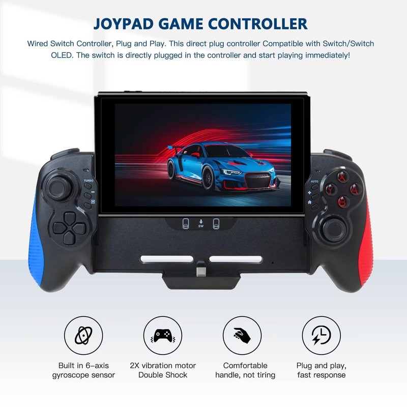 Ergonomic Design: The integrated handle and ergonomic design eliminate hand fatigue. the Full-Size Grip Switch Controller is more suitable for long time playing.