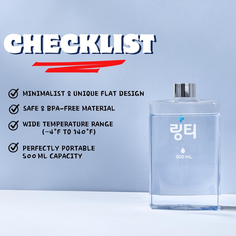LINGTEA Premium Bottle 16.9oz (500ml) | BPA Free | Light ECOZEN Material | Slim Water Bottle | Mordern Bottle | Minimalist | Great for Backpack with Books and Laptops | Ractangle