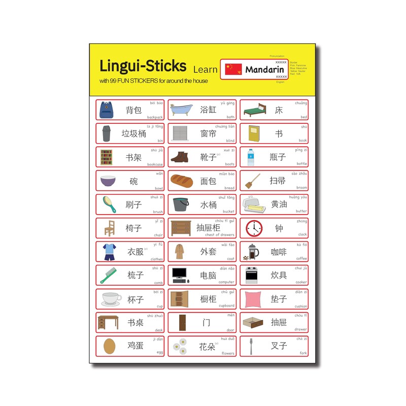 - Smart Concept: Each Chinese (Mandarin) language learning sticker includes a range of common daily-life Mandarin Chinese words, icons, and are coloured for great visibility. All our Learn Chinese Mandarin stickers are bilingual.