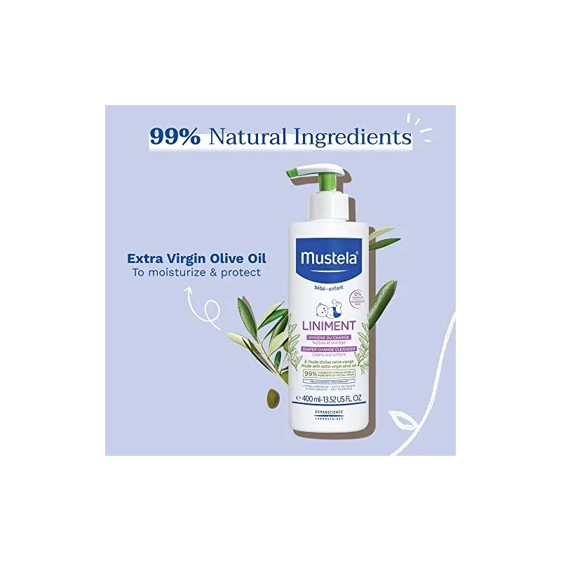 Linimento limpiador para bebés sin enjuague para el cambio de pañal con aceite de oliva virgen extra sin fragancia 13.52 fl. oz