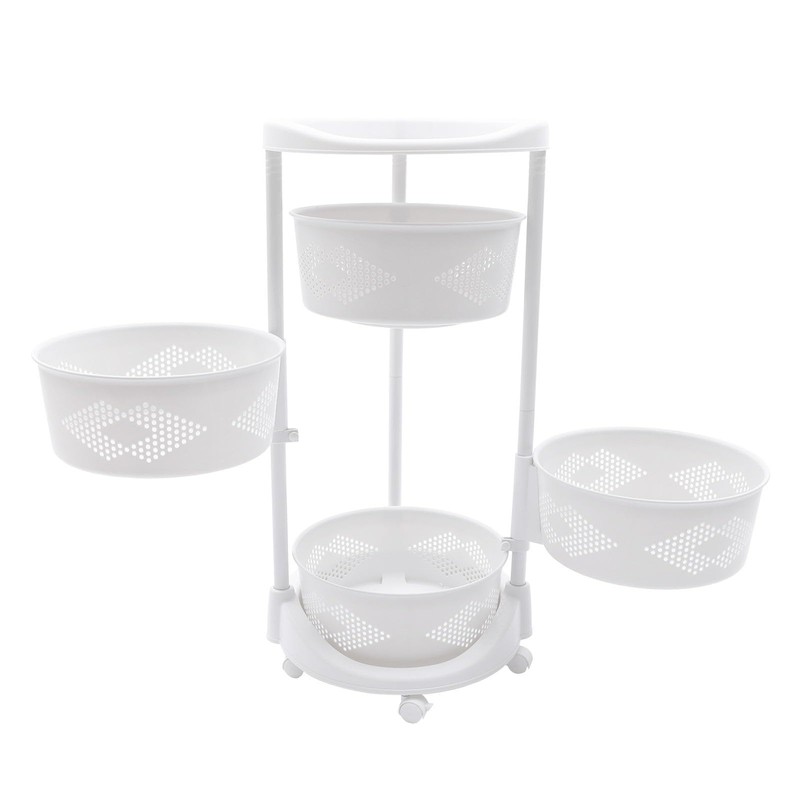 LINISHOP Multi-Layer Adjustable Kitchen Storage Rack 4-Tier Rotating Storage Shelf Floor Standing Detachable Fruit Vegetable Storage Basket w/5 Lockable Casters for Kitchen Living Room, White (4-Tier)