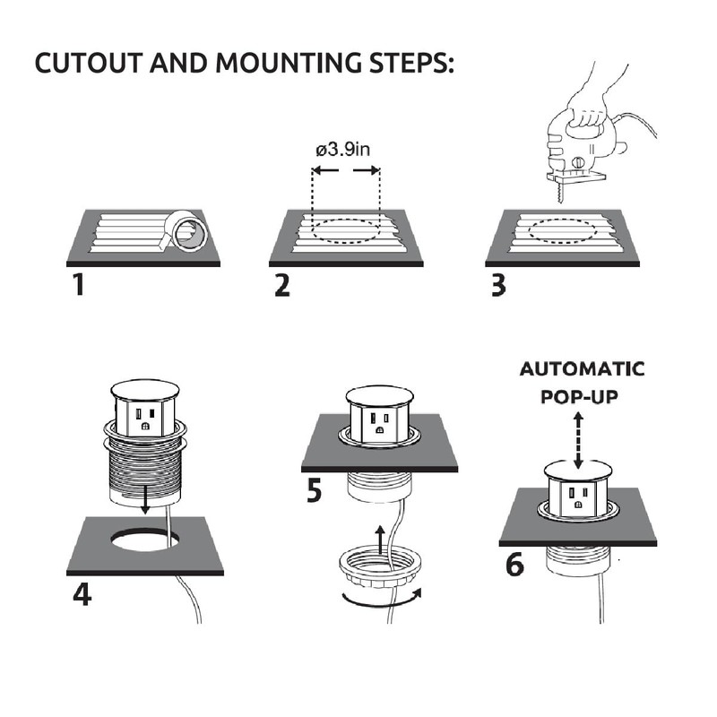 - CLEAN LOOK: fully retractable with a stainless steel finish, the pop-up socket lets you add power in a sophisticated and unobtrusive way