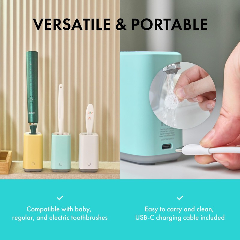 Link UV-C + Heat Drying Toothbrush Holder L-S201/Toothbrush Cover/Toothbrush Travel Containers/USB Charging Way/Auto Care System (Mint)