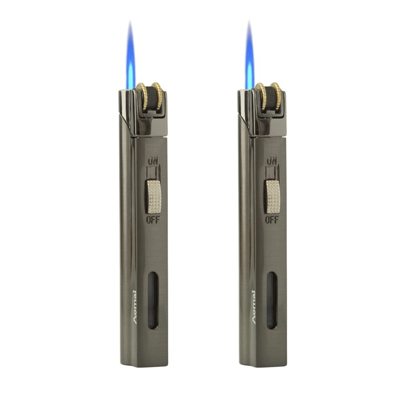 linkbest001 Portable Torch Lighter Fuel Visible Refillable Jet Flame Lockable and Flint Replaceable No Gas 2 Pack(Gray)