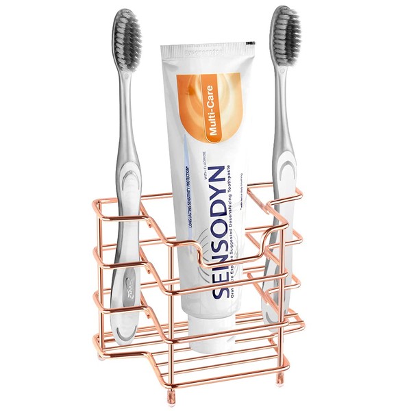 LinkIdea 歯ブラシホルダー 壁掛け ステンレススチール 2+1スロット シャワー 電動歯ブラシと歯磨き粉ホルダースタンド バスルーム カウンタートップオーガナイザー 収納ラック カミソリ用 (ローズゴールド)