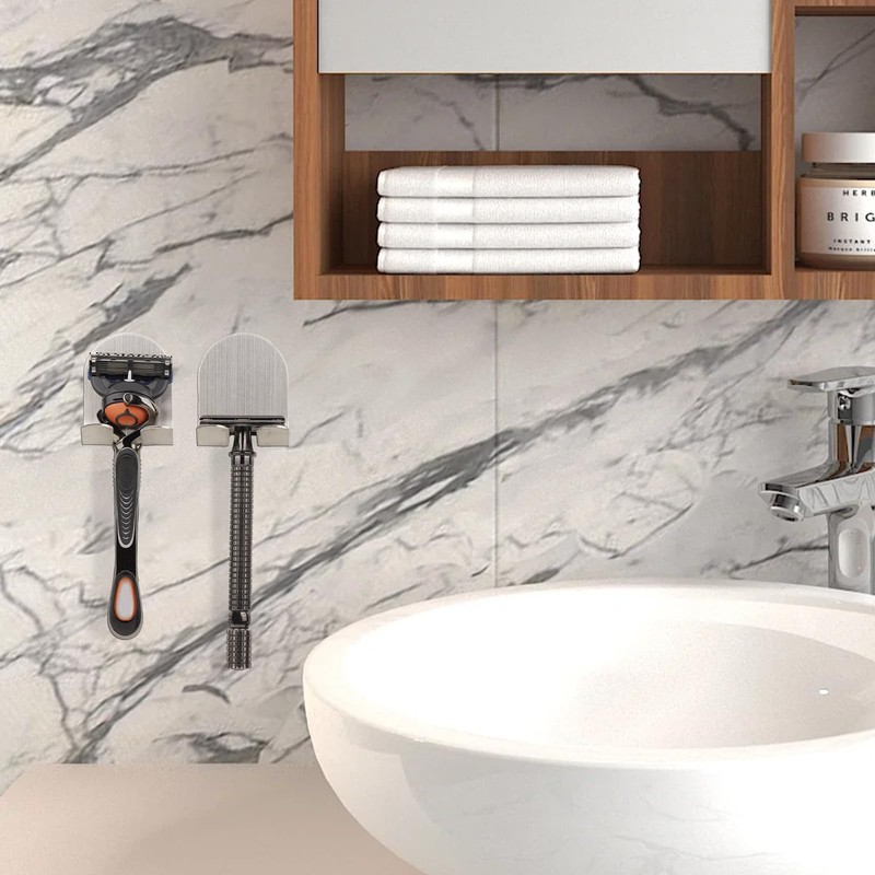 - Razor holder for shower made of stainless steel, self adhesive wall mount, no drilling.