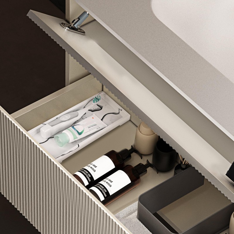 - Toothbrush holder made of resin with sleek shape, sturdy and easy to clean.