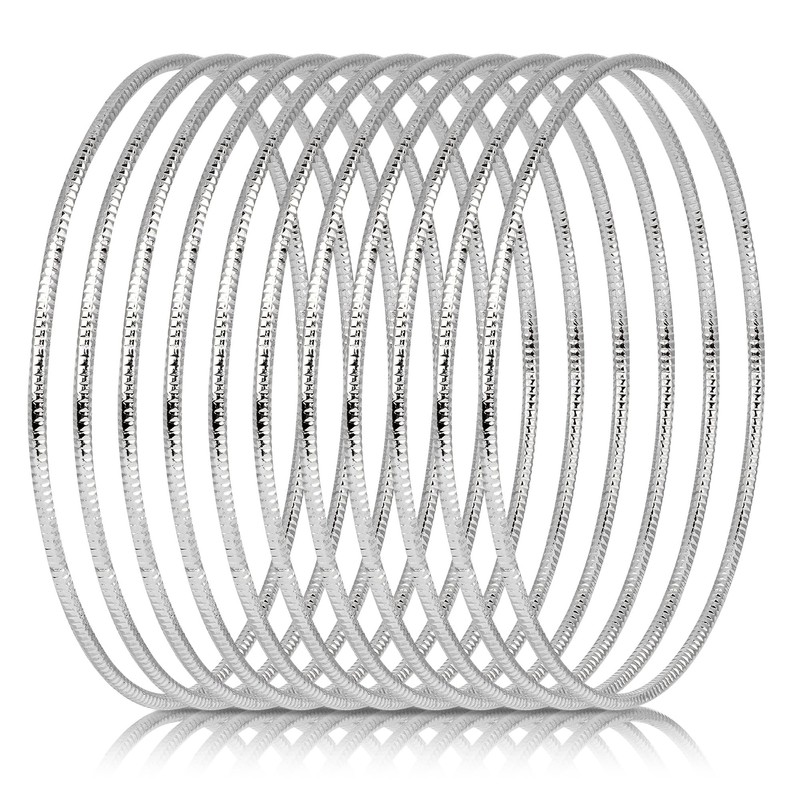 - Textured designs bangle bracelets are made of shiny polished 2mm round alloy.
