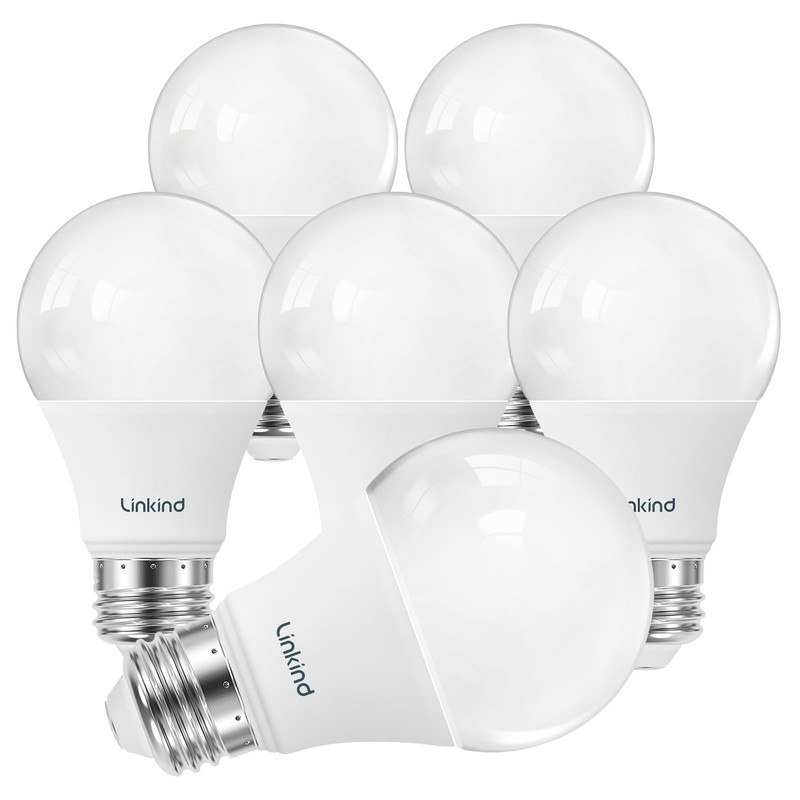 Linkind A19 LED Light Bulb, 60W Equivalent Light Bulbs, 8.5W 5000K Daylight, 840 Lumens Non-Dimmable LED Bulb, E26 Standard Base, Energy Efficient, 6-Pack