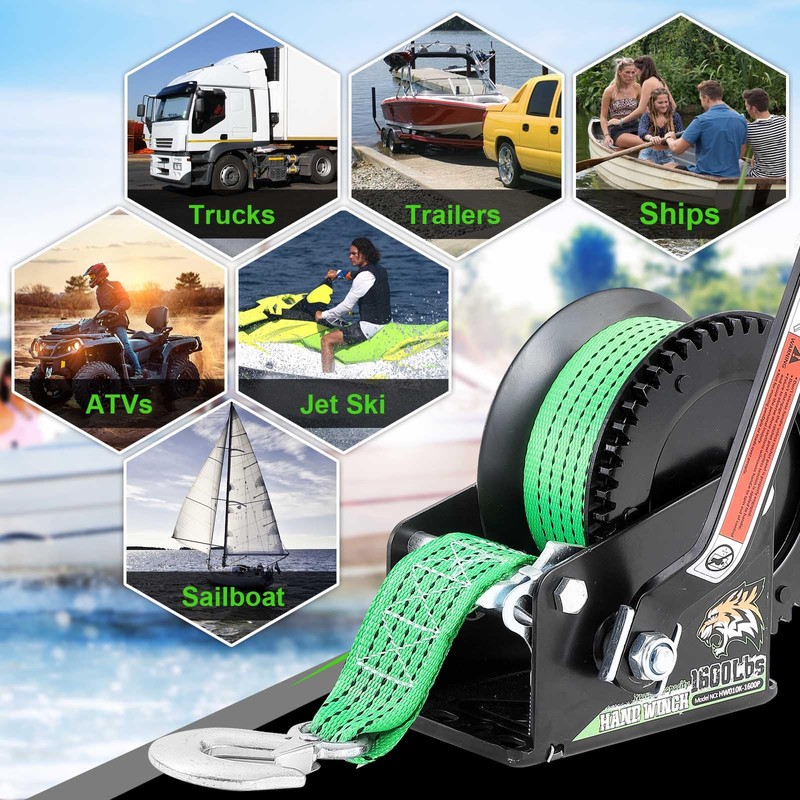 - MULTI-USE: Not just for boats and trailers, our ratchet trailer winch can be used to lift objects with good load lifting and traction. It's ideal for any type of outdoor activity that requires towing equipment. Trailers, boats, personal watercraft, ATVs, and RVs are all compatible.