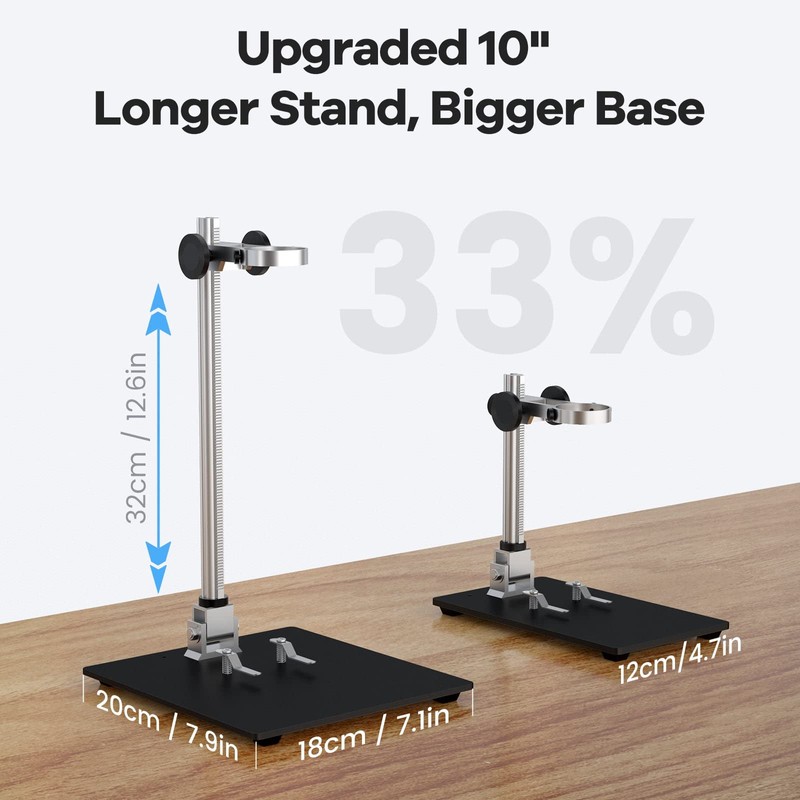 - Taller 12.6 inch Stand, Higher Working Distances Soldering Microscope LM210 comes with a taller 12.6 inch stand with fine gears, which provides a higher working distances and allows for larger objects to be observed easily. You have plenty of room to complete your electronics repair project