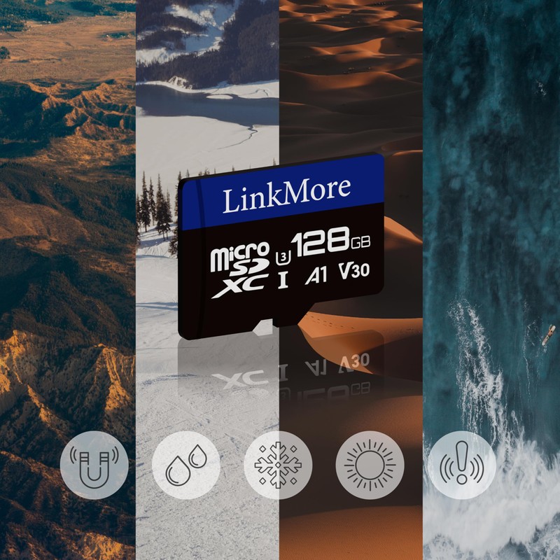 The LinkMore 128GB Micro SDXC Card is a high-performance storage solution designed for seamless 4K Ultra HD video recording, Full HD photography, and smooth app performance.