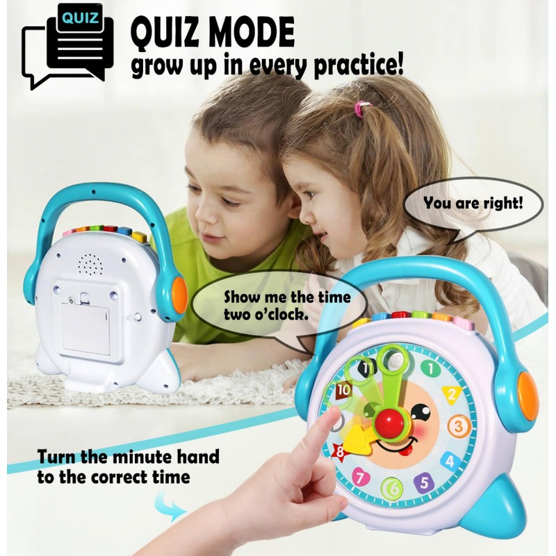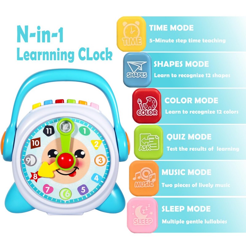 N-IN-1 PRESCHOOL LEARNING SYSTEM - Combines telling time practice, color/shape recognition, and audio play, an all-in-one educational learning clock for kids ages 3-6 to develop cognitive skills.