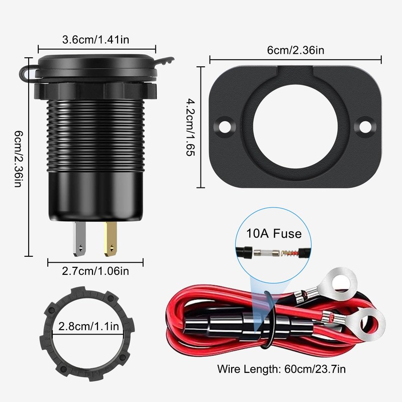 - Simple Installation: Mark the hole and drill, insert the outlet, and screw in the screws. Connect the red wire to '+' and the black wire to '-'