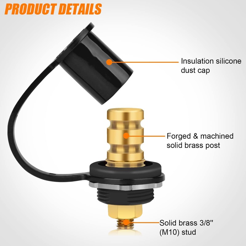 - Specification: The terminal of the battery jumper terminals are 3/8" (M10)stud design, rated at 250A 12V