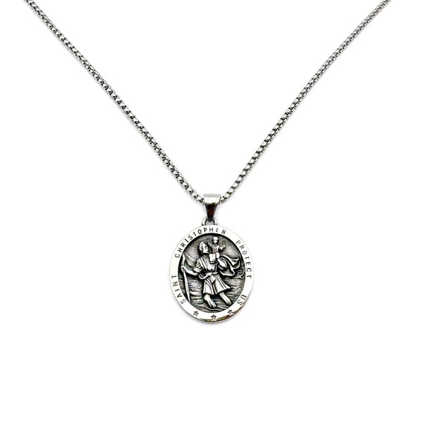 - Faith: The necklace features an engraved image of St. Christopher, the protector of travelers. Engraved cross on the back. Powerful Christian Amulets, with Strength and Perseverance, Protect Us Inner Peace and Security!