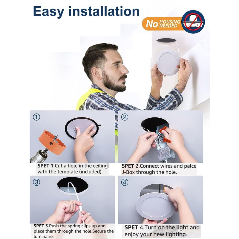 - 💡 Easy to install: Low profile embedded lighting is suitable for renovation and new decoration: use drilling tools to drill a 155mm diameter hole in the ceiling; Connect the junction box to the cable; Secure it to the ceiling with a safety clip. No trouble, installation can be completed in just a few minutes.