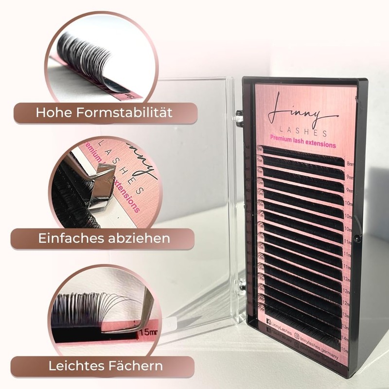 LINNY LASHES Eyelash Extension, D Curl, 16 Rows, Thickness 0.07, 0.05, 0.03, Length 8-15 mm, Mix Box, Lash Extensions (D-Curl 0.07, Mix 8-15 mm)