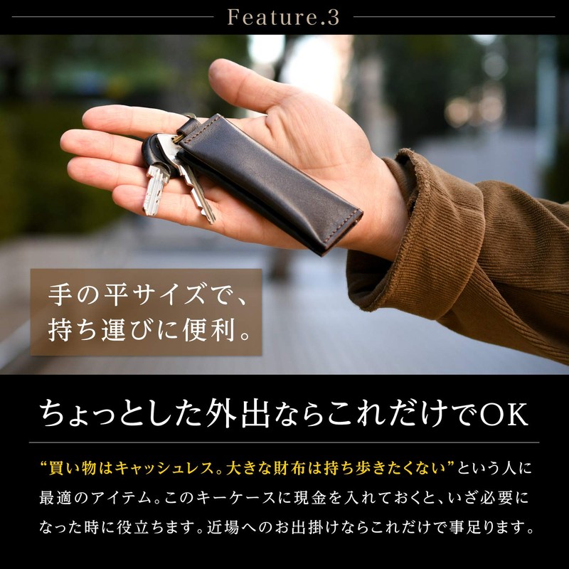 - (Recommended item for cash-less) "Cashless for everyday shopping. Recommended for those who have to carry their keys." The key case is a compact coin purse, so it is useful when you need a change even if you normally need cash-free. This is a key case for the minimalist who wants to live smart
