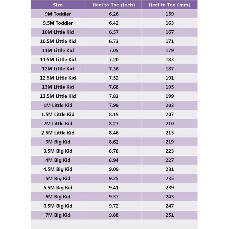 - Size: Heel to toe length: 9.25''/235mm. Please measure your feet length first and choose according to the size chart. Boys order 0.5-1 size up.