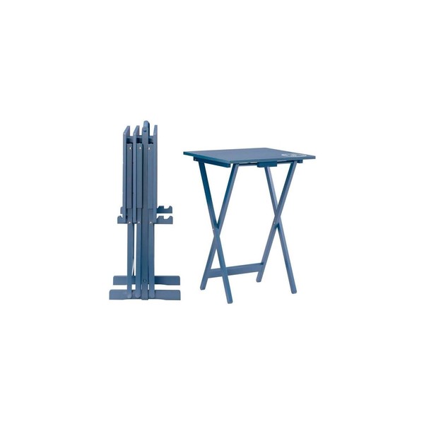 - Includes 4 tray tables and convenient storage stand; Each table supports up to 20 lbs; Tray tables arrive fully assembled stand requires some assembly; Nautical style in blue and white offers a costal vibe; Assembly Assembly Required; Style Modern; Product Dimensions 18.9 x 15.75 x 26.38; Material Rubberwood; Item Weight(lbs) 30.87