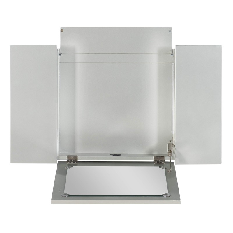 • Convenient flip top mirror with a safety stay hinge allows access to open storage beneath