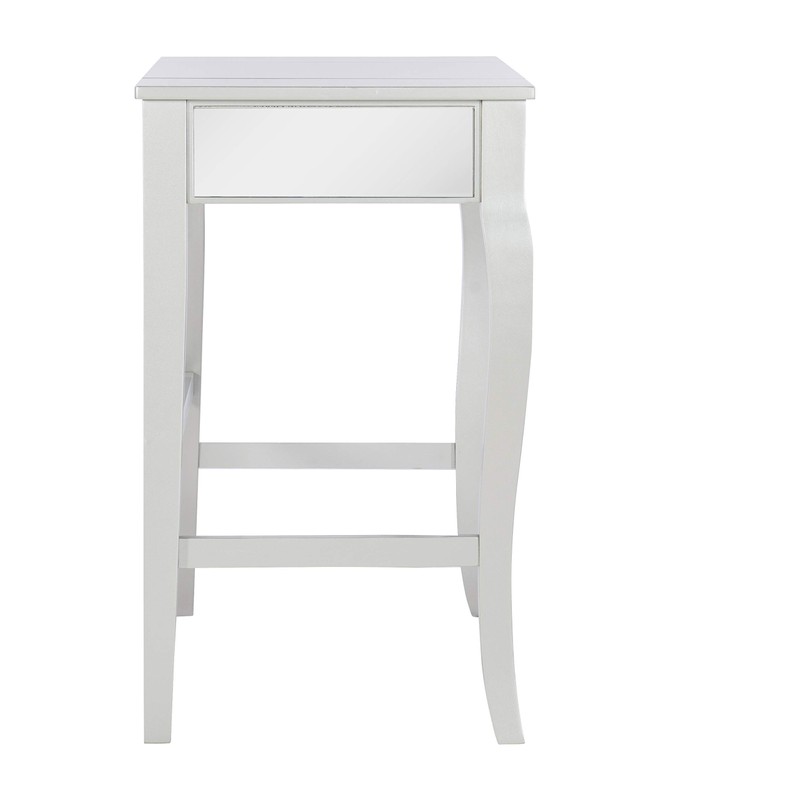 • Contemporary style with curved legs and painted shimmery silver finish and mirrored front and side panels