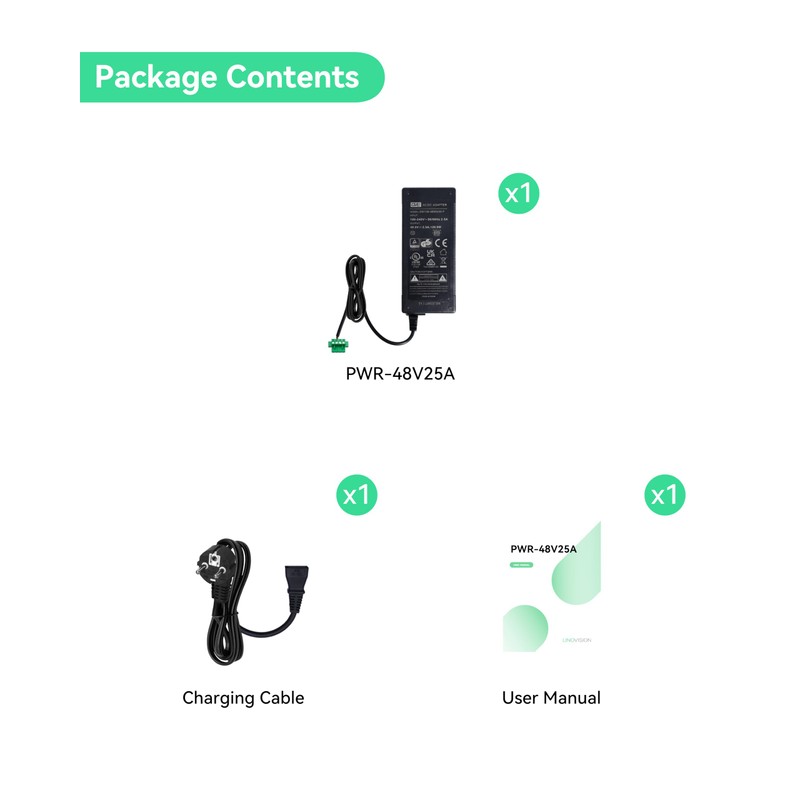 The LINOVISION DC 48V 2.5A Power Adapter is a reliable and efficient solution for powering your PoE switches and PoE NVRs. With an input voltage range of AC 100-240V and an output of DC 48V 2.5A, this 120W power supply delivers stable and consistent performance for your network devices. Thanks to its compact design and robust construction, it is suitable for various applications and ensures smooth operation and a long service life. Whether you're setting up a small office network or a larger business system, this power supply provides the power needed to keep your PoE devices running smoothly.