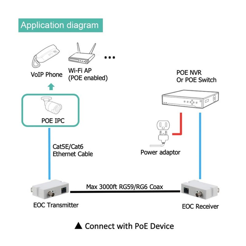 - 【PoE & IP OVER COAX CONVERTER】LINOVISION’s POE IP Over Coax converter can be used to upgrade analog system to IP surveillance system while using existing coaxial cable. Compatible with RG59, RG6 cables. Supports POE standards 802.3af (PoE) and 802.3at (PoE+). EOC Receiver should be powered by POE switch or POE injector while Transmitter should be connected with POE devices or NON-POE devices