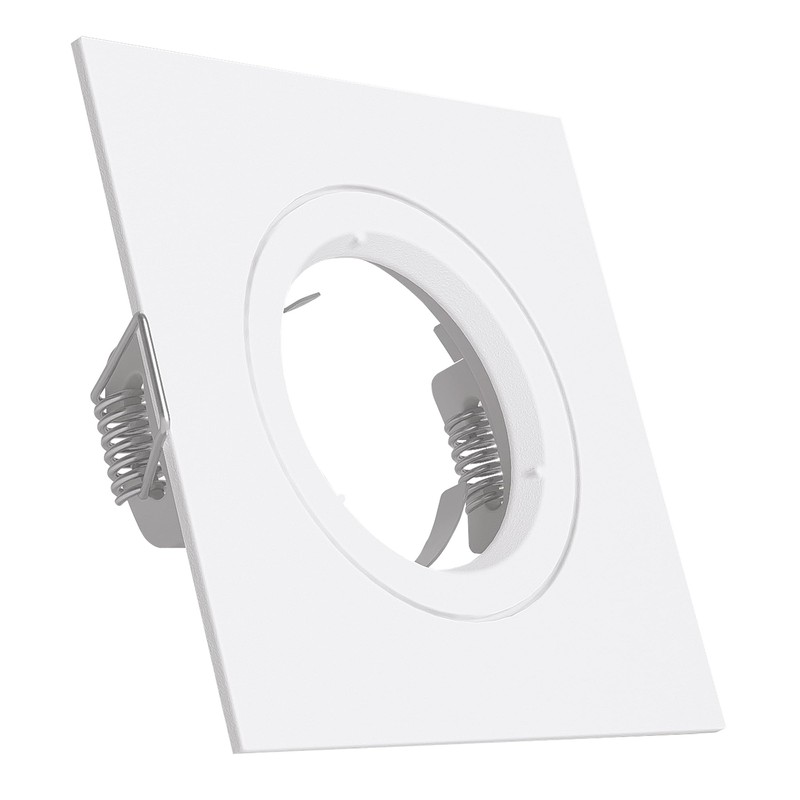 Spot mounting frame square for GU10 or MR16 bulbs - square shape aluminium matt white rigid. Suitable for ceiling or wall mounting. Easy to change without snap ring.