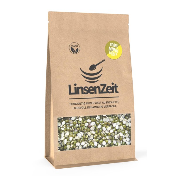 LinsenZeit - Green Mung Beans Halved 600g - Mung Dal Chilka - Great Protein Source - Vegan, No Additives & Premium Quality