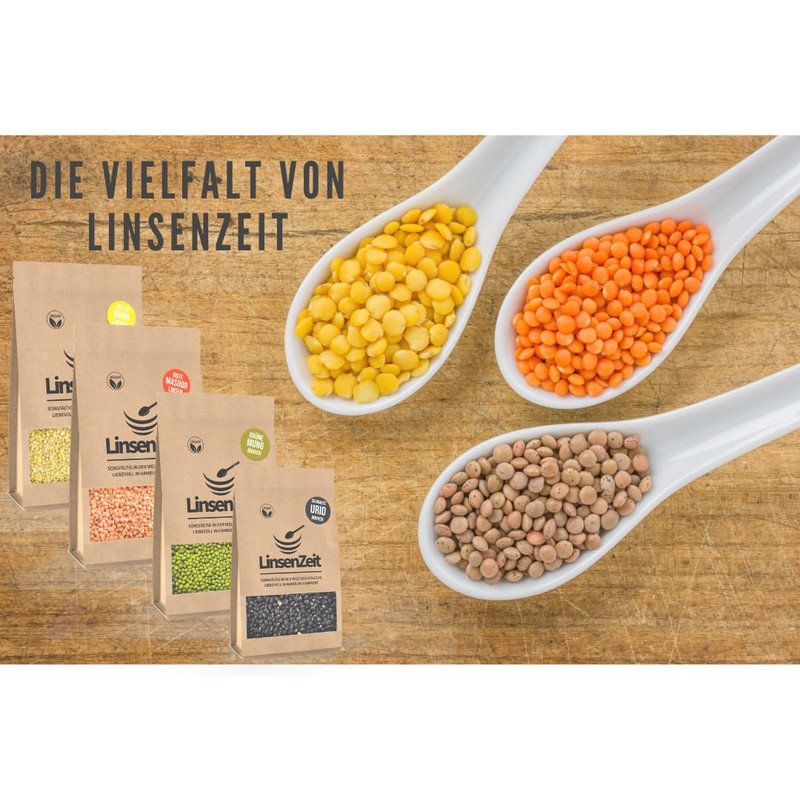 - The variety of lens time – we offer you the best quality and the right variety. Sie finden unter LinsenZeit eine Vielzahl von Hülsenfrüchten (Linsen, Bohnen). Red Lentils (Masoor Dal), Green Mung Beans, Yellow Mung Lentils (Mung dal), Yellow Toor Lentils, White Chickpeas, Red Kidney Beans and much more.