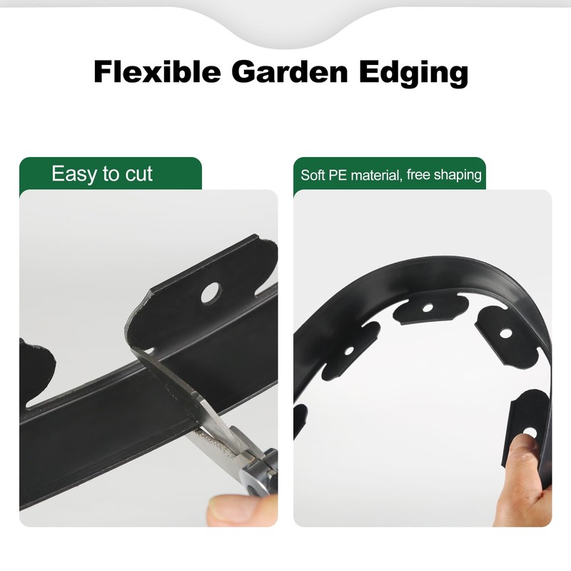 - Flexible Garden Edging: This garden edging has good ductility, it can be shaped into straight or curved lines based on the shape of your flower beds or yard circles. It can also be trimmed to length as needs, effortlessly achieve your desired design around the landscape yard.