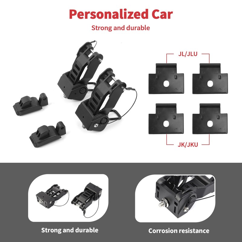 - 🚘Usage: Black, Fit for Jeep Wrangler JK JL & Gladiator JT, Hood Latches, Aluminum Accessories, Device Tether.