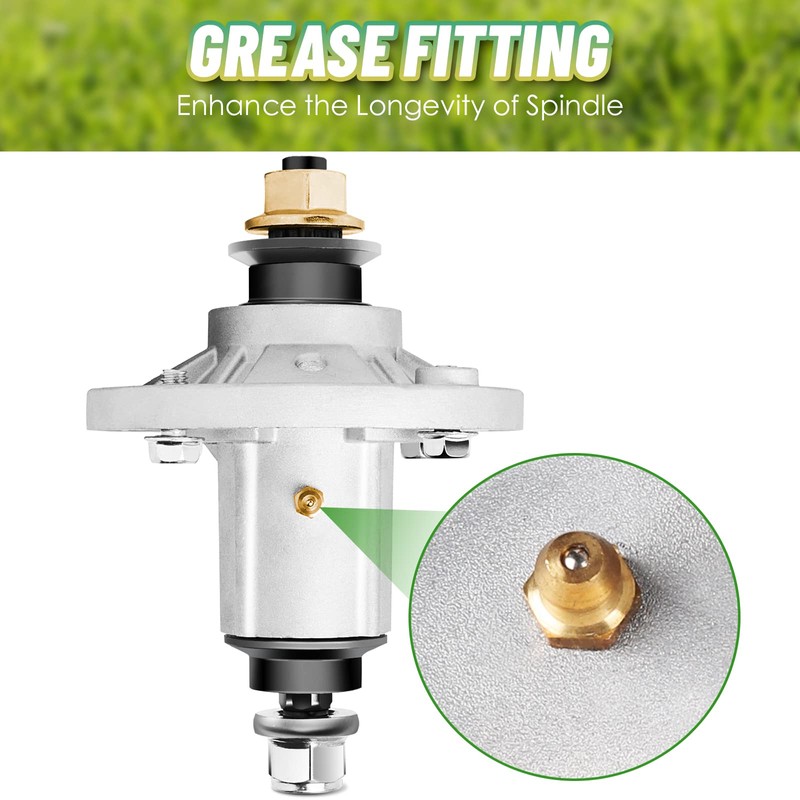 - Grease Zerk & Tapped Bolts: The spindle comes pre-greased, the grease fitting save your maintenance time, improve the longevity. Tapped bolts save your installation time, no need to self-tapped and extra tools