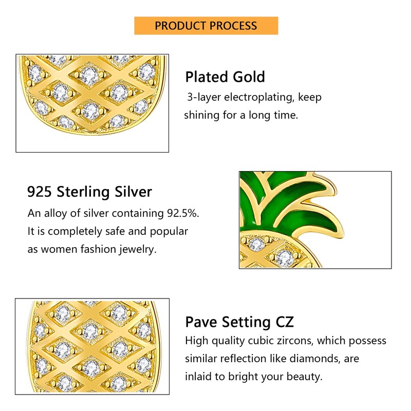 - Material: women's jewellery pineapple necklace made of 925 sterling silver with 18K gold plating process, nickel-free, lead-free, cadmium-free, hypoallergenic, safe for sensitive skin and harmless to health.